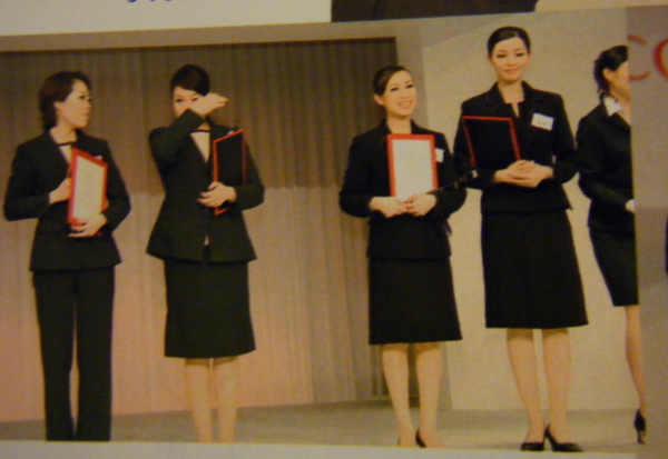 台上請出資生堂的彩妝團隊~其中中間的女孩兒~是個厲害的人兒~