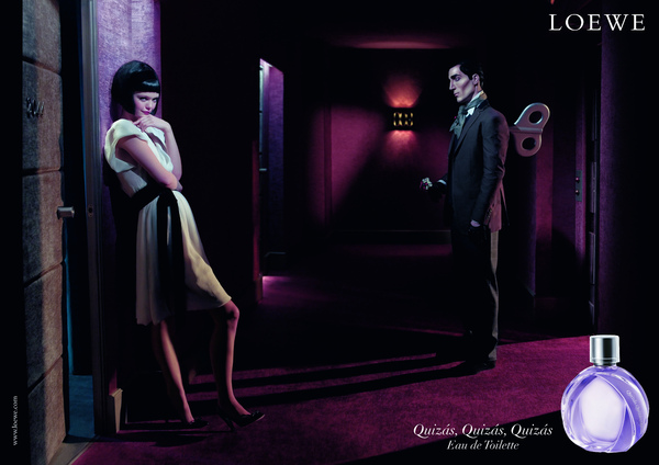 LOEWE以 “Game of Seduction”誘惑遊戲的詼諧,將原有的廣告粉飾成Quizás Quizás Quizás惑許淡香水的平面廣告。畫面幽默風趣,調皮卻不矯揉造作地呈現永恆的誘惑遊戲…