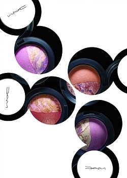 礦物彩妝 (Mineralization) 橫掃美容國度,而透過Grand Duos, M.A.C更進一步推出「柔礦迷光雙色腮紅」,一邊是大理石混合色 ( marbleized mélange),另一邊是讚美的單色。以漂亮的三色線紋呈現的柔光超閃亮珠光,突顯及美化顴骨;流行、立體的單色閃光,讓妝容不會太粉霜。