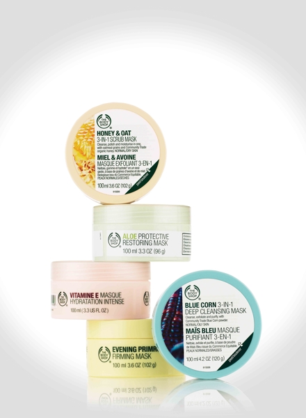妳有多久沒有好好地對待自己、呵護疼惜自己的肌膚了呢?THE BODY SHOP 9大天然營養素面膜,最能符合時下不同需求的妳。屬於中油性肌膚的妳,不妨試試海藻離子礦泥淨化面膜及藍玉米控油調理面膜,能有效控油並能深層清除皮脂污垢;有痘痘的困擾嗎?THE BODY SHOP明星系列茶樹精油淨荳面膜是當然不二之選!乾性及缺水型的妳,最適合水嫩淨白保濕面膜及維他命E抗氧化保濕面膜來保有水嫩肌膚;另外還有適合熟齡肌膚的極緻活顏彈力面膜、活絡代謝肌膚的熱循環淨化面膜、結合深層清潔、滋潤調理及去角質淨白三重功效的蜜糖燕麥3效面膜,以及針對敏感性膚質專用的蘆薈燕麥舒緩修護面膜。