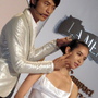 ●以輕柔的粉撲(Angel Hair Puff)沾取少量粉餅,輕輕按壓於使用過「亮采緊緻粉底液」或「亮采緊緻粉底霜」上過妝的臉龐,當作完妝前最後一道定妝手續,以及接下來隨時需要補妝時的最佳選擇。